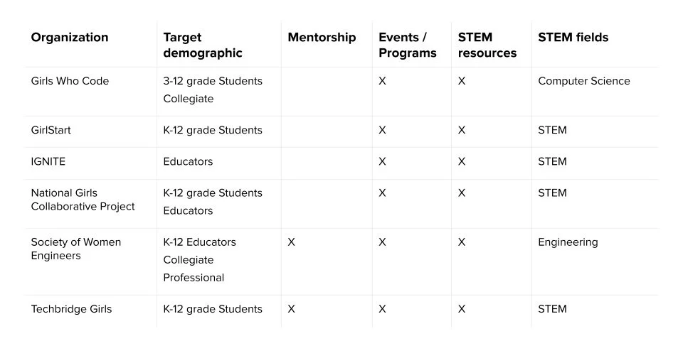Based on this preliminary comparative research, I found a lack of options for girls pursuing STEM mentorship and connection.